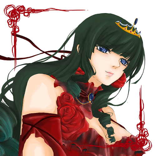 碧眼に赤黒ドレスは色彩悪いかなと思ったんですがどうでしょうね。……うん、それ以前の問題か。ちょっとやりすぎた気もします。(でも楽しかったです。)