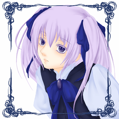 キャラクター性というか、その方向が良く判らなかったので服も色彩も殆ど弄ってません(多分)。襟と胸元のブローチくらいかな。後縮小掛けてるので潰れてますが、眸の塗り方をちょっと変えてみました。こういうのも有りかも知れない。(問題は銀髪の筈が紫系になってしまったという……!)